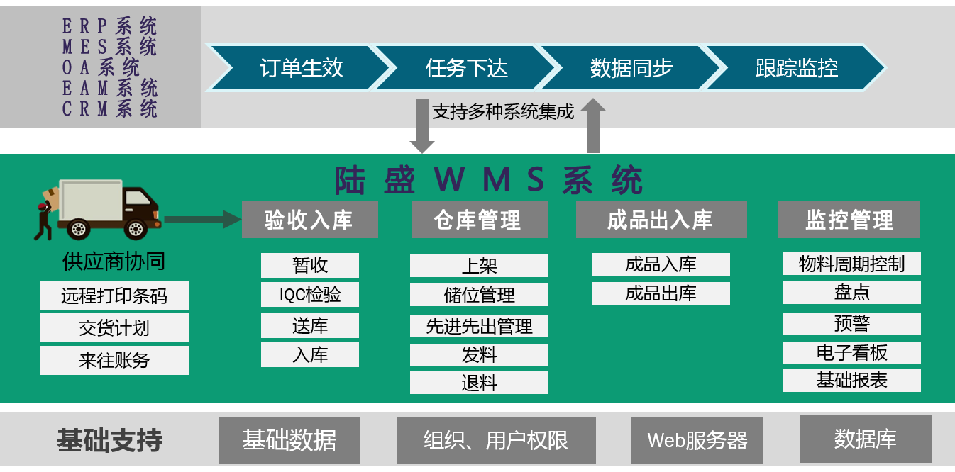 爱体育官方网站WMS仓储管理系统 以实物管理为基础,以条形码/RFID技术为特点的专业仓储管理软件;支持货品全生命周期管理,采购、验收、入库、移位、调拨、出库等管理。支持RFID标签/条码标签/工业手持/手机等多条件应用。
